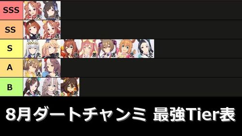 【暫定版】8月ダートチャンミ最強ウマ娘Tier表+スキル編成【約600周の検証結果】